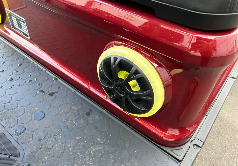 Design & Utility: Automotive E-coat chassis, automobile-style rear bumper, 14×7” aluminum wheels with 225/55R14 radial tires, rear storage trunk, optional golf bag holder and all-weather enclosure